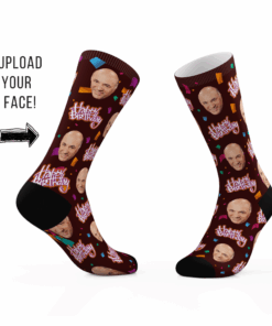 Put your face, pets’ face, or friends’ face on our custom birthday-themed socks!