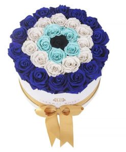 This stunning arrangement of preserved, luxury roses comes displayed in circular rose gift box. Our Evil Eye Gift Collection wards off negativity and brings positive energy to any space. This stunning collection was created to infuse your life with healing energy while elevating your space with stunning Eternity Roses®. A stunning white, black, and blue roses bouquet that not only brings good luck but it’s often noticed for its beauty. These lasting roses are the perfect gift for a birthday, anniversary, graduation, or even just because. Give the gift of Eternal Roses.