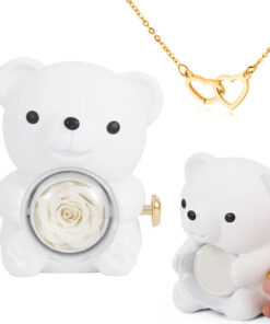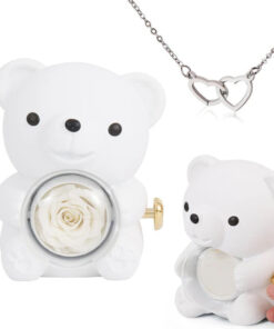 Whether it’s for a birthday, anniversary, Valentine’s Day, or just to say “I love you,” the Rose Bear with Eternal Rose & Heart Necklace is the ideal gift. Its unique and thoughtful design ensures it will be treasured for a lifetime.