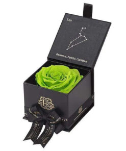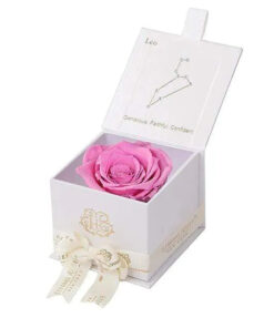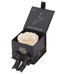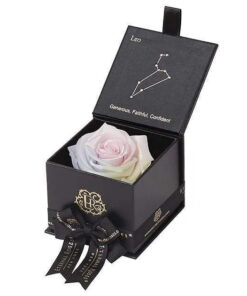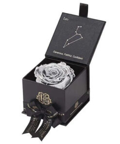 Looking for a unique gift for that special Leo in your life? Our Zodiac-themed preserved roses each come in a custom-designed black or white textured box displaying the astrological sign’s constellation using powerful crystals. Pretty and powerful, crystals are a key accessory in helping one tune into their soul through energy. A unique and thoughtful gift for any loved one, astrology fan, or star-obsessed friend. Our preserved roses last up to 3 years and will leave your loved one star struck! Leo zodiac gifts are available in a variety of colors.