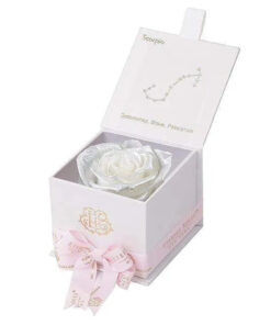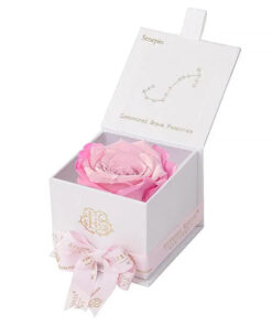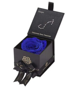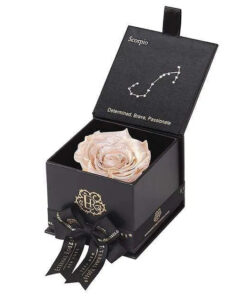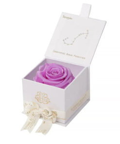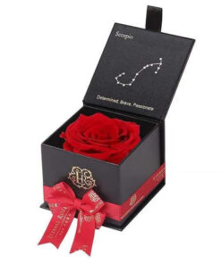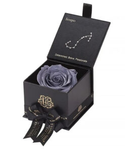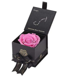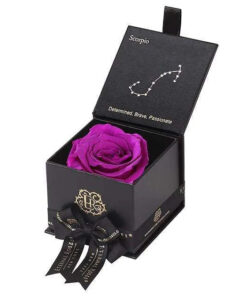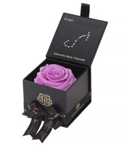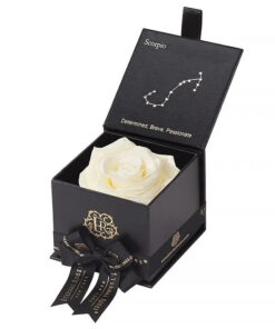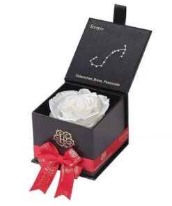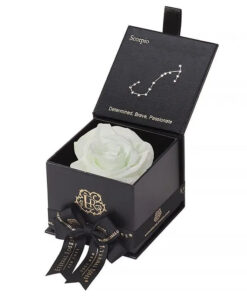 Looking for a unique gift for that special Scorpio in your life? Our preserved Scorpio Gifts each come in a custom-designed black or white textured box displaying the astrological sign’s constellation using powerful crystals. Pretty and powerful, crystals are a key accessory in helping one tune into their soul through energy. A unique and thoughtful gift for any loved one, astrology fan, or star-obsessed friend. Our preserved roses last up to 3 years and will leave your loved one star struck! Available in a variety of colors. This zodiac flower gift box makes a perfect, personalized gift for your favorite Scorpio.