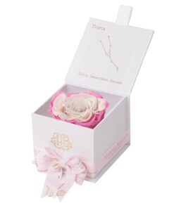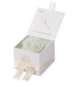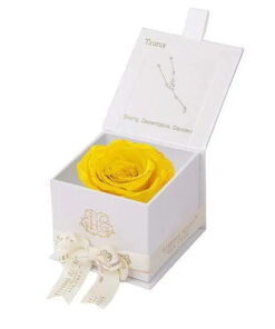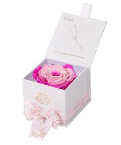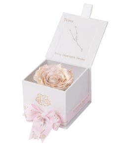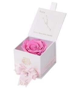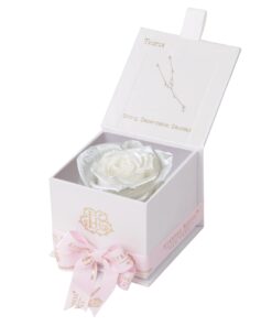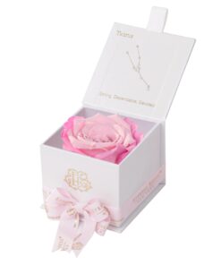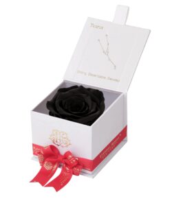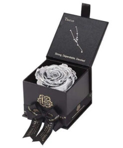 Looking for a unique gift for that special Taurus in your life? Our Zodiac-themed preserved roses each come in a custom-designed black or white textured box displaying the astrological sign’s constellation using powerful crystals. Pretty and powerful, crystals are a key accessory in helping one tune into their soul through energy. A unique and thoughtful gift for any loved one, astrology fan, or star-obsessed friend. Our preserved roses last up to 3 years and will leave your loved one star struck! Taurus zodiac gifts are available in a variety of colors.