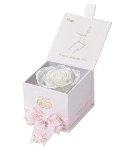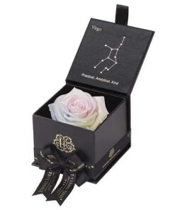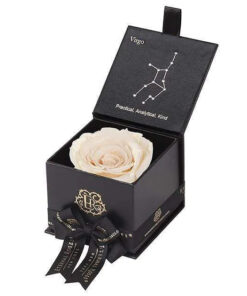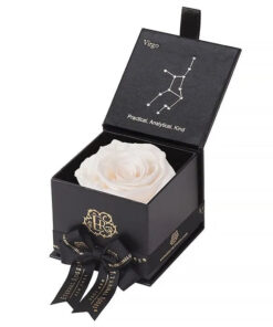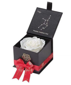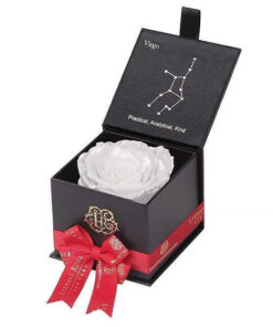 Looking for a unique gift for that special Virgo in your life? Our Zodiac-themed preserved roses each come in a custom-designed black or white textured box displaying the astrological sign’s constellation using powerful crystals. Pretty and powerful, crystals are a key accessory in helping one tune into their soul using energy. A unique and thoughtful gift for any loved one, astrology fan, or star-obsessed friend. Our preserved roses last up to 3 years and will leave your loved one star struck! Virgo zodiac gifts are available in a variety of colors. Makes a perfect, personalized gift for your favorite Virgo.