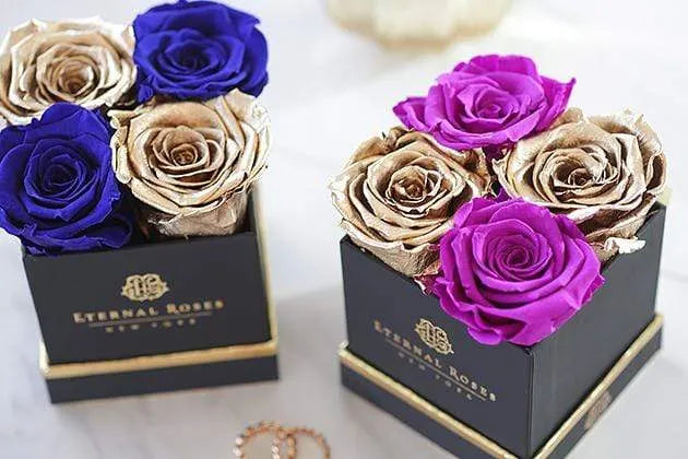 This classic preserved rose small gift box holds four handcrafted roses which last up to three years. An elegant and romantic gift for that special someone.