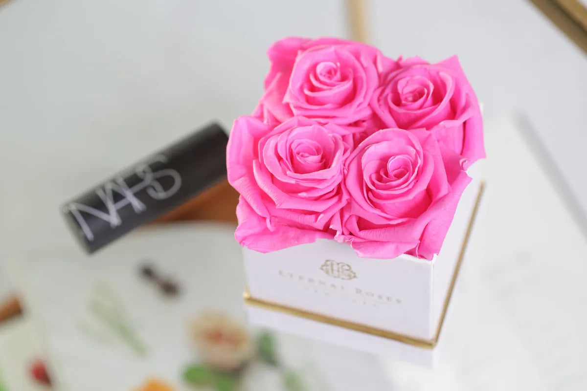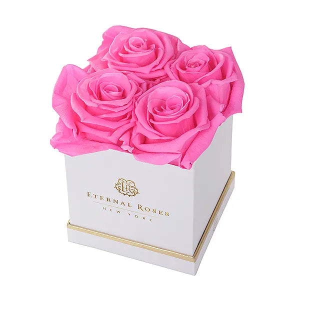 This small box of roses holds four handcrafted preserved roses which can last up to three years. The Lennox Gift Box is an elegant and romantic gift for that special someone. Eternal Roses should be handled with care. Because they are forever roses, they do not require water. This small box of roses should also not be exposed to direct sunlight, excessive heat, or dust. Eternal Roses are the perfect gift for any occasion.