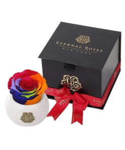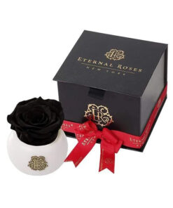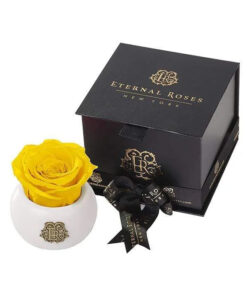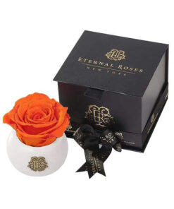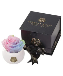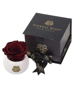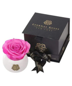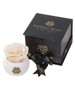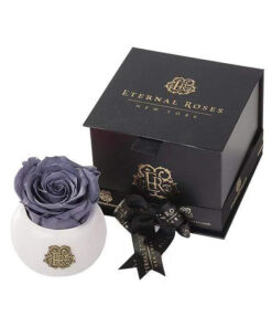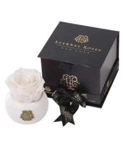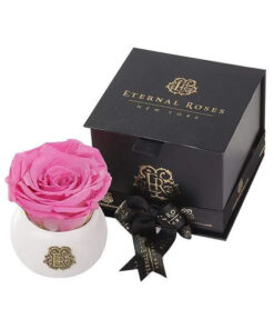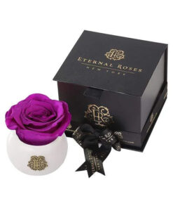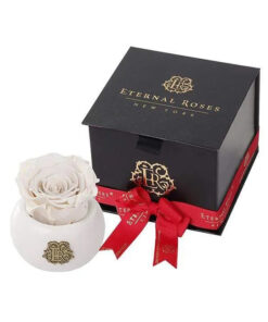 Designed to fit any space, this single preserved luxury rose comes in a smooth matted white ceramic bowl for display in a home, office, or anywhere you want to add a touch of color. Each handcrafted real preserved rose lasts up to three years.