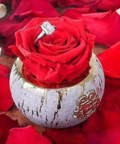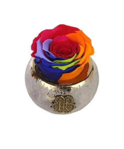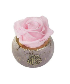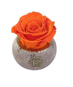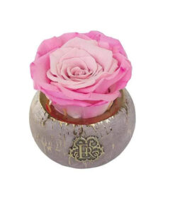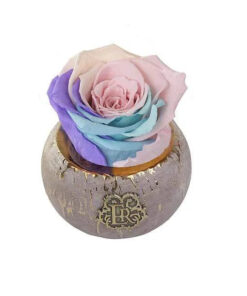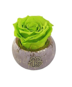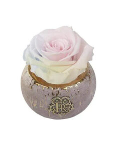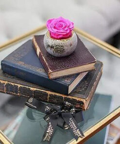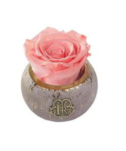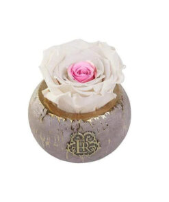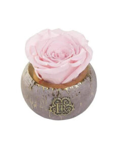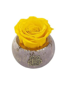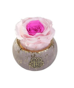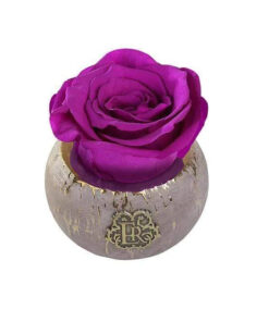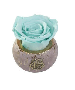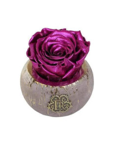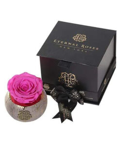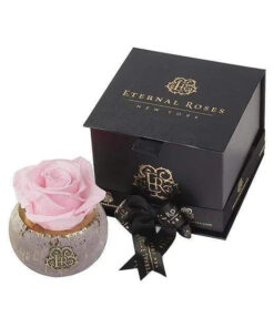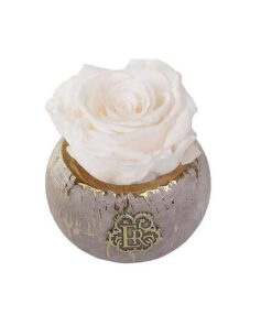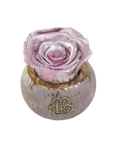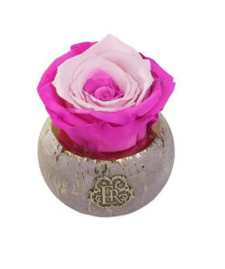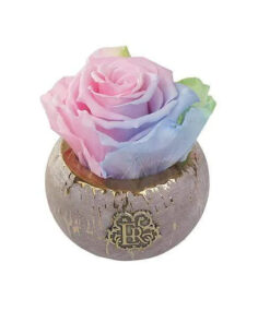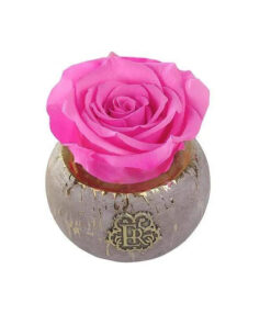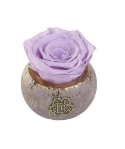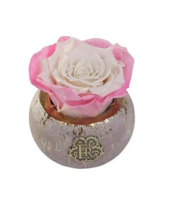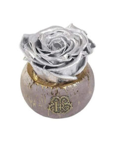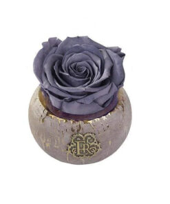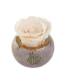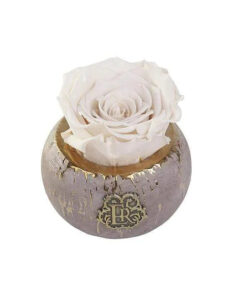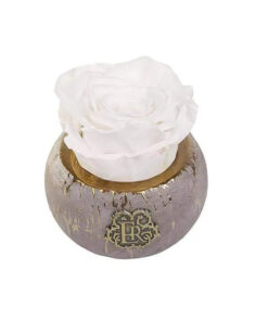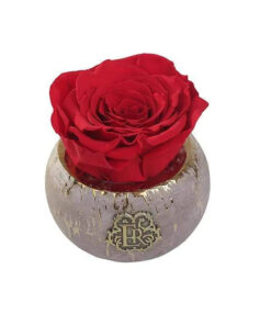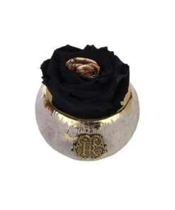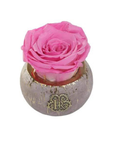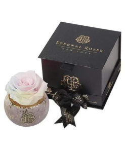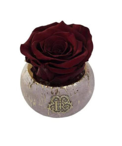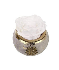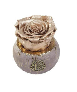 Designed to fit any space, this single preserved luxury rose comes in a classic gold dripped ceramic bowl for display in a home, office, or anywhere you want to add a touch of color. Each handcrafted real preserved rose lasts up to three years.