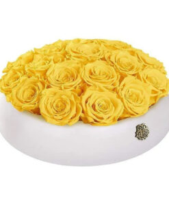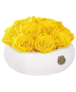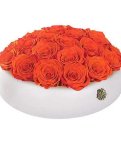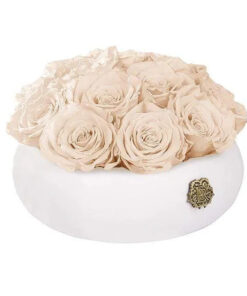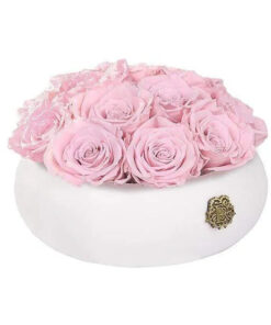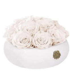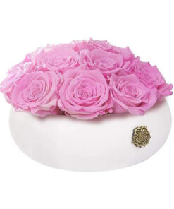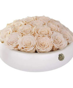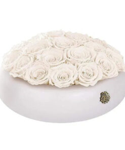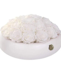 - Roses are arranged in a beautiful ceramic bowl with a mat-white modern finish