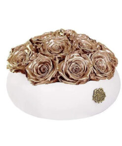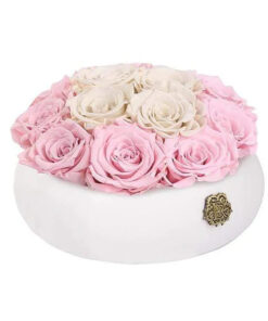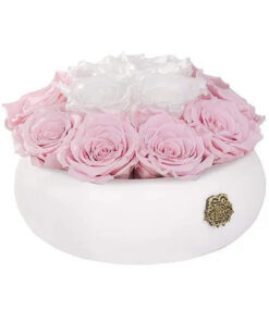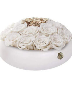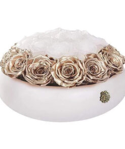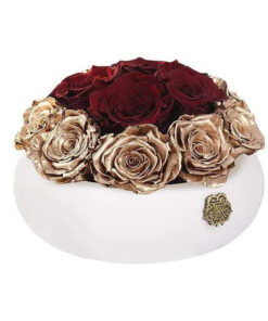 A collection that clearly illustrates an exquisite eye for design. Our Patented Centerpiece collection has been designed and imagined to be the featured décor for any room or occasion. These unique small and medium rose table arrangements include a variety of striking and colorful combinations of natural, preserved roses featuring our elegant textured ceramics in a classic finish. This stunning floral table centerpiece fits a variety of décor, from modern to traditional to antique. It is truly a work of art and these real roses can last up to three years with zero care. Order your Eternal Roses Table Arrangement for yourself or give them as a gift!