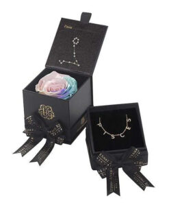 Looking for a unique gift for that special Pisces in your life? Our Zodiac-themed preserved roses each come in a custom-designed black textured box displaying the astrological sign’s constellation using powerful crystals. Pretty and powerful, crystals are a key accessory in helping one tune into their soul using energy. Each Pisces necklace comes in its own Eternal Roses gift box with a ribbon, making it the ideal gift already wrapped. A unique and thoughtful gift bundle for any loved one, astrology fan, or star-obsessed friend.
