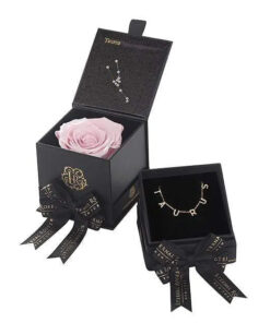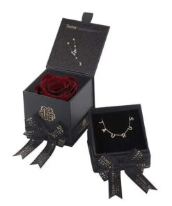 Looking for a unique gift for a Taurus woman in your life? Our Zodiac-themed preserved roses each come in a custom-designed black textured box displaying the astrological sign’s constellation using powerful crystals. Pretty and powerful, crystals are a key accessory in helping one tune into their soul using energy. Each Zodiac-themed necklace comes in its own Eternal Roses gift box with a ribbon, making it the ideal gift already wrapped. A unique and thoughtful Taurus birthday present for any loved one, astrology fan, or star-obsessed friend.